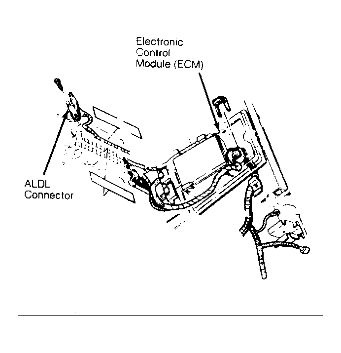 - Remove ECM from vehicle. ECM is located between the seats at rear bulkhead. See Fig 1. Position ECM so that bottom cover is facing upward. Remove slide-off PROM access cover by depressing locking tab.