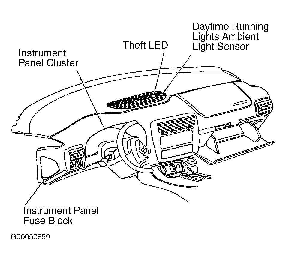 CAUTION: Do not use test light or battery voltage to test THEFT LED or LED will be damaged. Test light is okay to test LED circuits with LED disconnected.