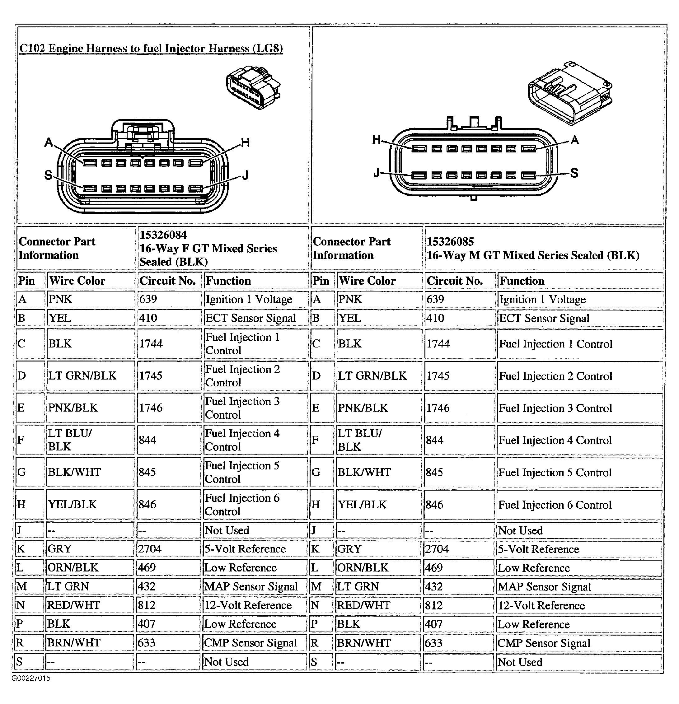 - Turn ignition switch to OFF position. Disconnect the fuel injector multi-way harness connector. Probe the fuel injector ignition 1 voltage circuit, fuse side, using a test light connected to battery voltage. See Figure. Does the test light illuminate? If yes, go to step 9. If no, go to next step.