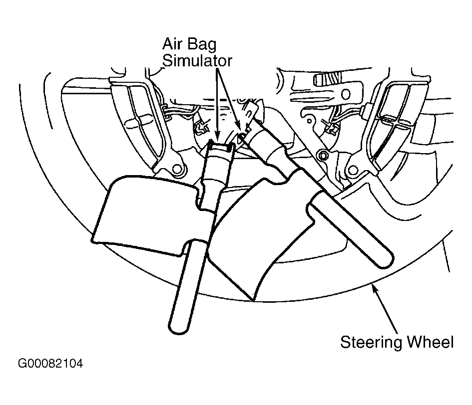 1. Disconnect the battery ground cable and wait for one minute. Remove the driver air bag module. See DRIVER AIR BAG MODULE . Connect 2 air bag simulators (418-F395) to the clockspring side of the driver air bag module electrical connectors. See Fig 1. See AIR BAG SIMULATOR .