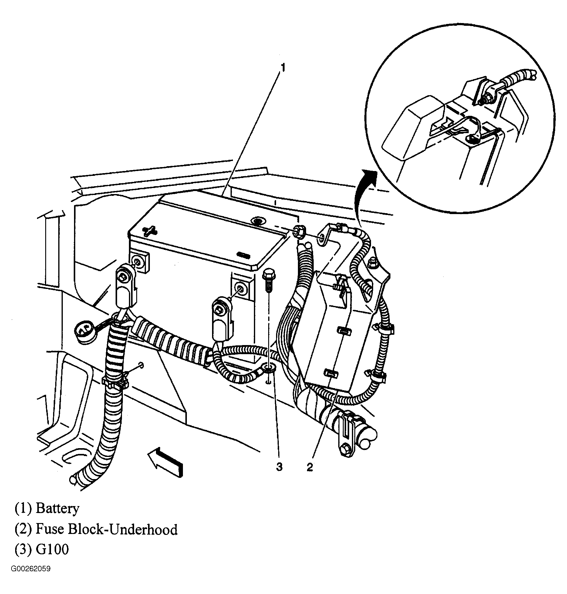 | Underhood Fuse Block | Mounted to right front strut tower. See Figure . |