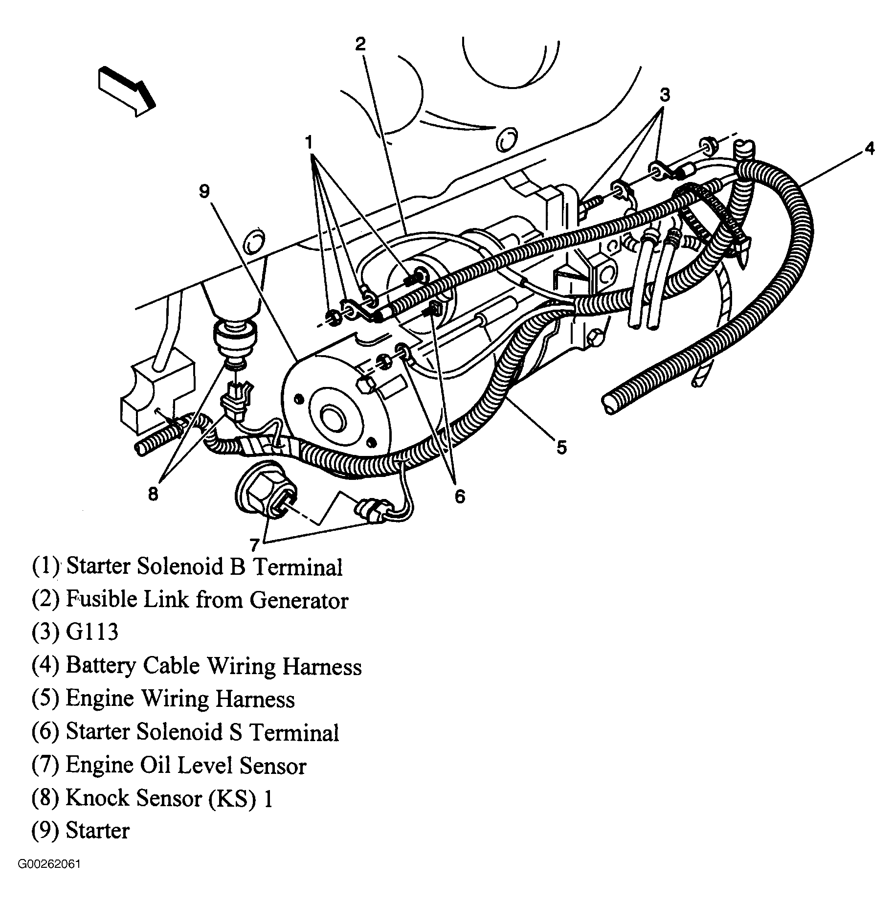 | Fusible Link From Generator | Left side of engine, on starter assembly. See Figure . |