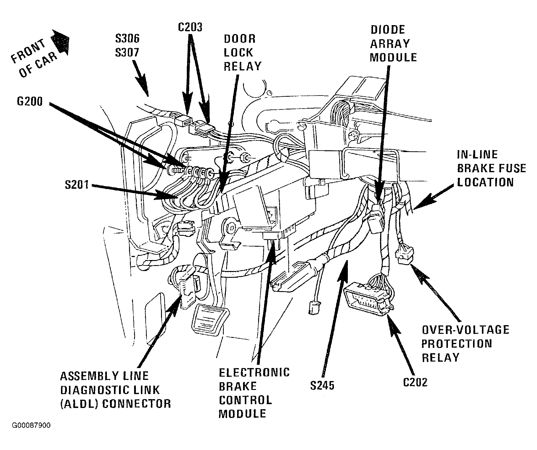 Electronic Brake Control Module Behind Left Side Of Instrument Panel, Left Of Steering Column. See Fig 1