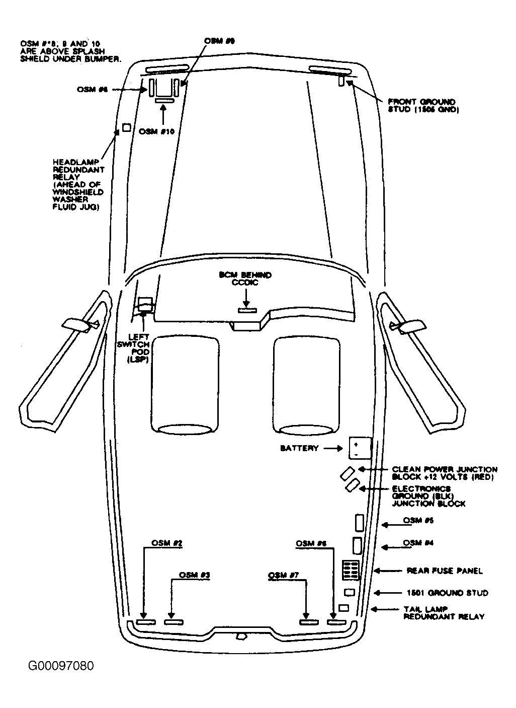 While the BCM is scanning each OSM and the LSP, it is making both commands and requests. The data received informs the BCM as to the integrity of the 4 outputs of the OSM. Therefore, if an OSM detects an open or short in one of its outputs, the BCM will be informed of the malfunction and its location immediately. See Fig 1.