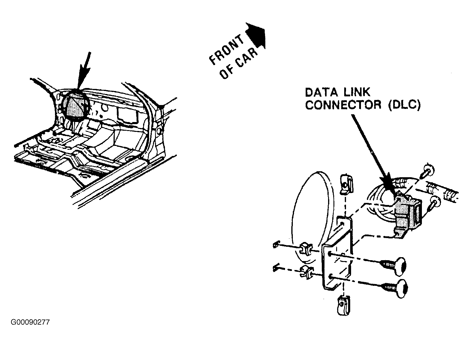 Data Link Connector (DLC) At Left Kick Panel. See Fig 3 .