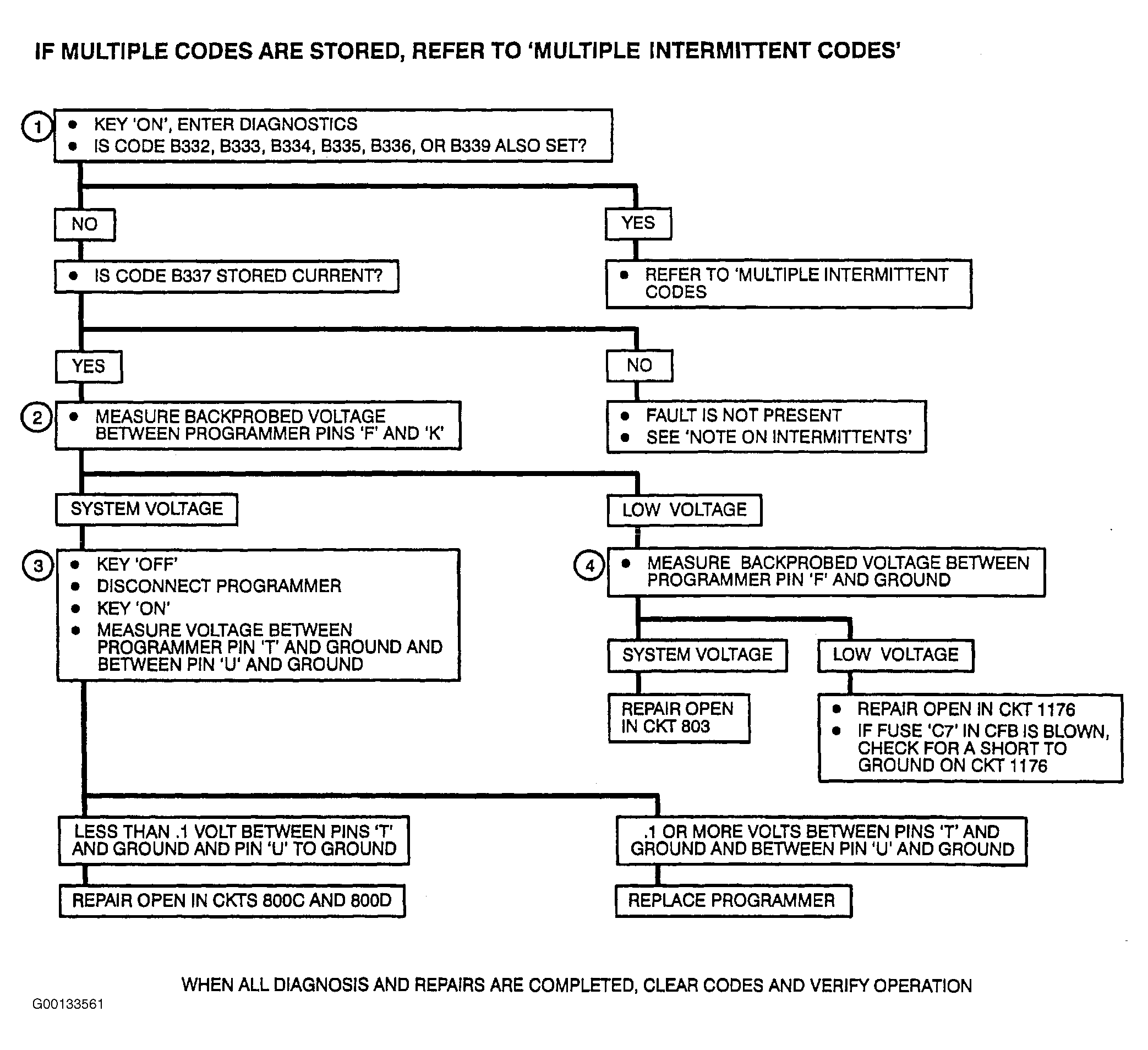 - If multiple codes are present, a data line fault is indicated and should be diagnosed using the preceding MULTIPLE INTERMITTENT CODES chart.
