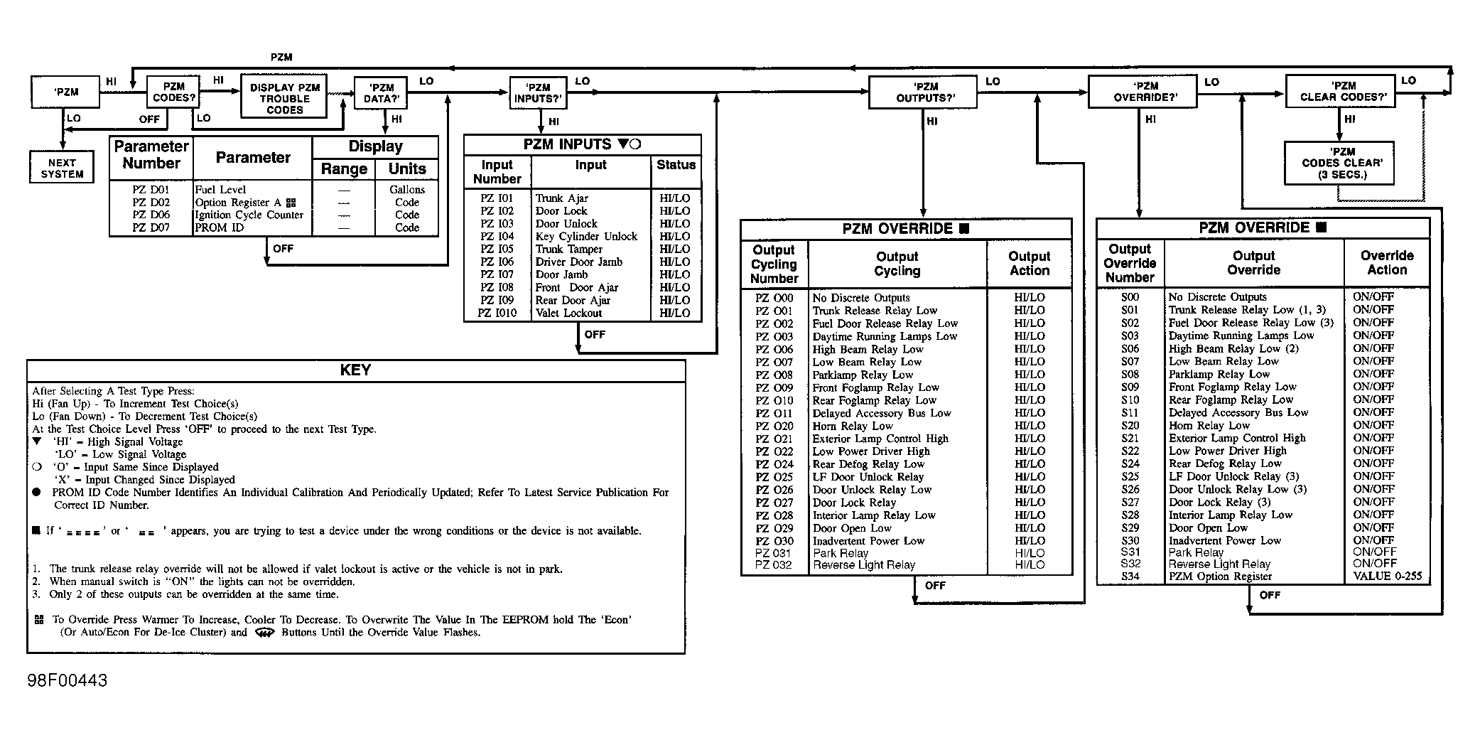 - Pressing HI (fan up) button on CCP will select displayed system for testing (i.e., PZM DATA, PZM INPUTS, PZM OUTPUTS, etc.). See Figure .