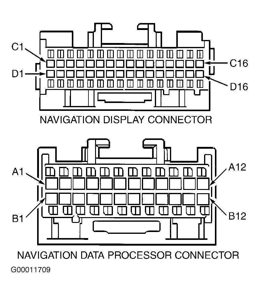 - Disconnect navigation data processor connector. See COMPONENT LOCATIONS . Attempt to establish communication with any module still connected to class 2 serial data line. If scan tool communicates with any module, go to next step. If scan tool does not communicate with any module, go to step 49 .