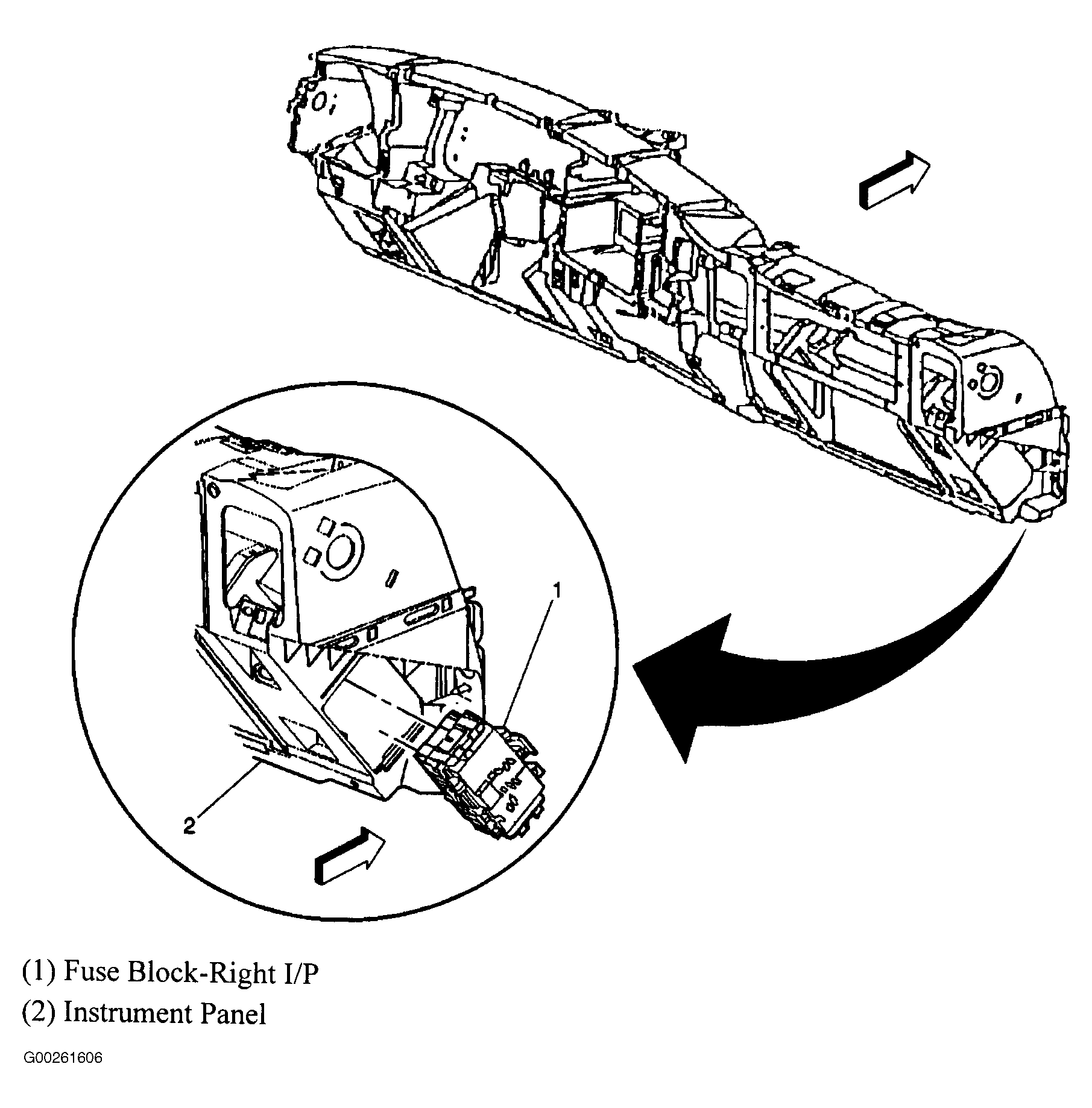 | Right I/P Fuse Block | On lower right side of dash. See Figure. |
