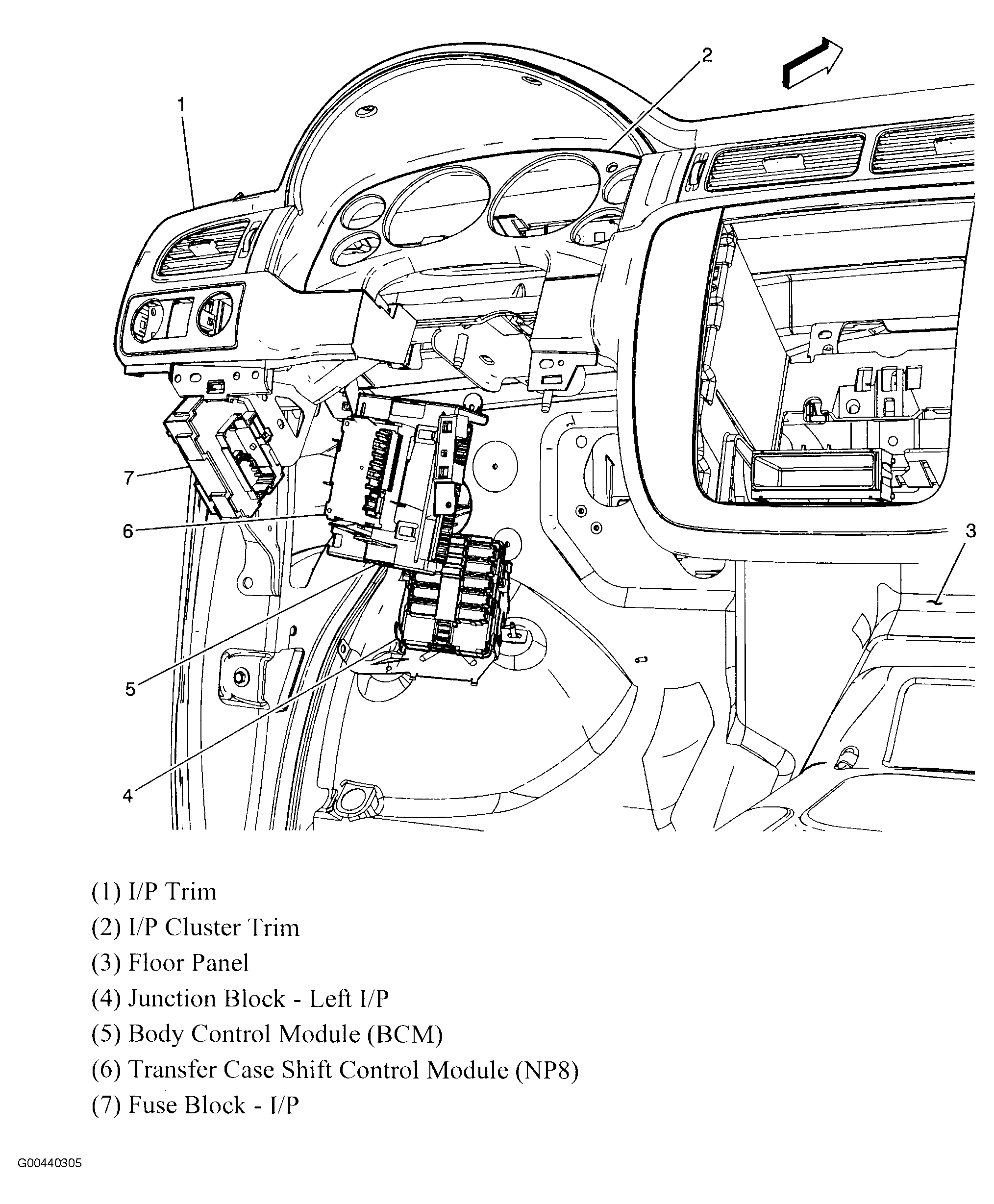 | Junction Block - Left I/P | Left end of dash. See Figure. |