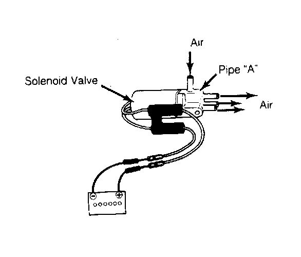 Disconnect 3 rubber hoses connected to carburetor. Blow air into inlet pipe "A". See Fig 1 . Apply 12 volts to valve and ensure valve opens. If valve opens, air should be felt from other 3 pipes. When 12 volts is removed from valve, valve should close.