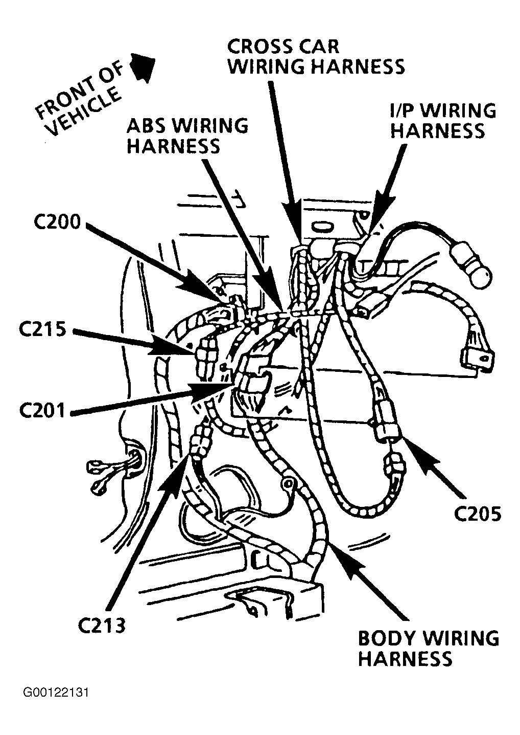 | G201 (Except 1994) | Lower Left "A" Pillar, Left Of Park Brake. |