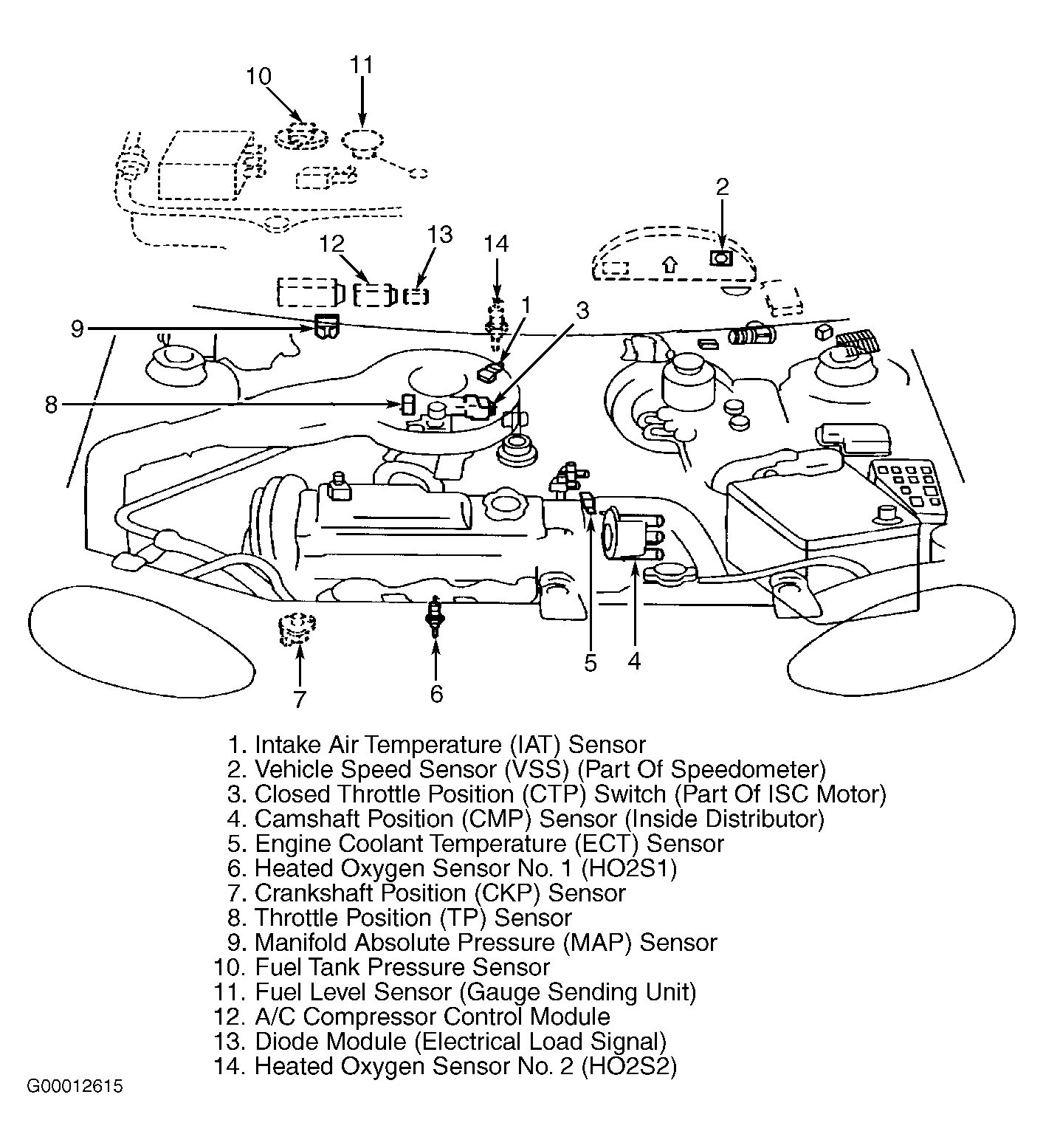 Power for Powertrain Control Module (PCM) is supplied from FI fuse (15-amp) through main relay. PCM memory power is supplied from DOME fuse (15-amp). FI, IG-COIL and DOME fuses are located in relay/fuse box. PCM distributes power and controls ground of various sensors, switches and solenoids for engine control. See Figure-Figure .