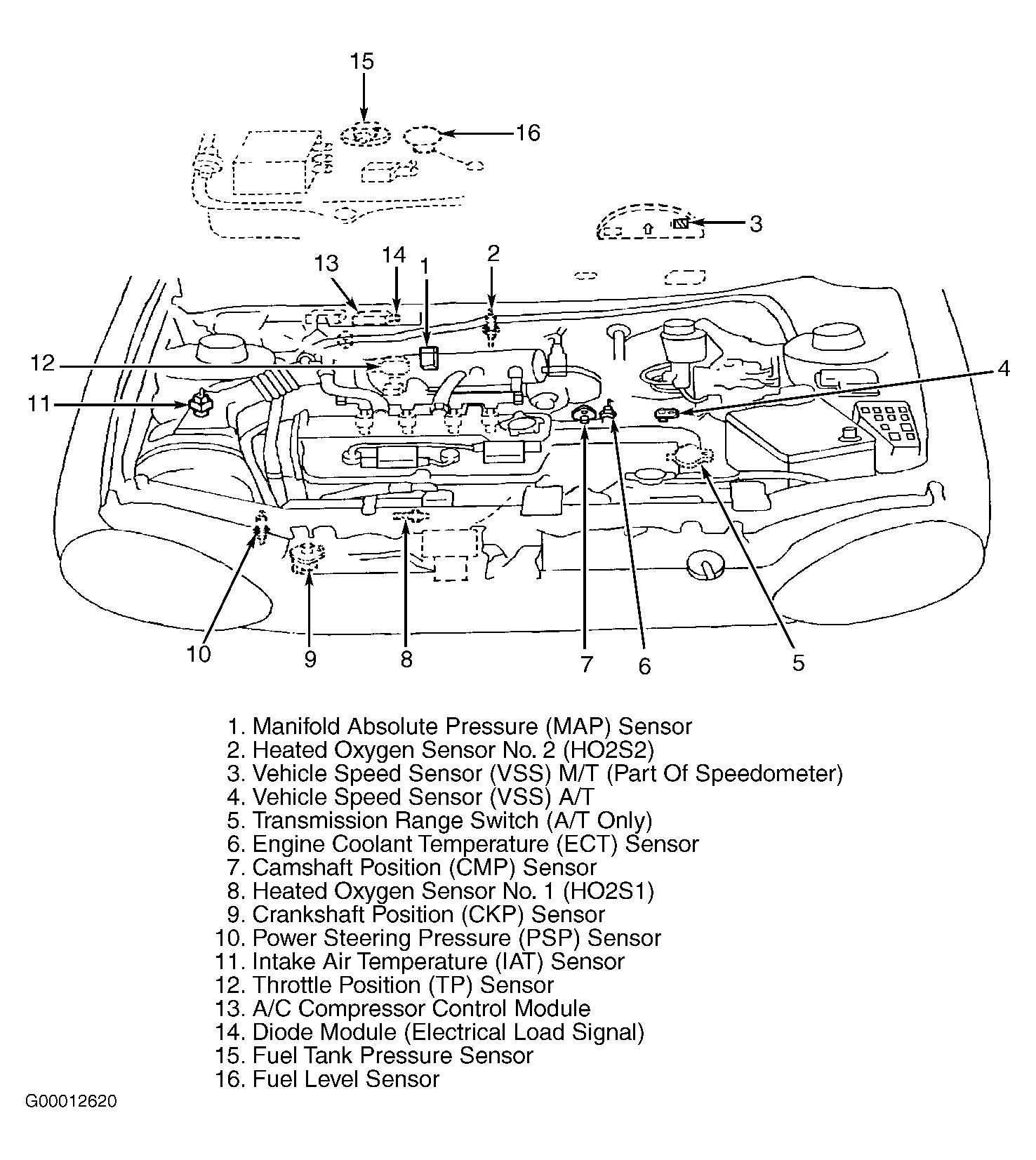 PCM monitors a voltage signal sent from Transaxle Range (TR) switch to monitor transaxle range (gear selection). PCM uses this signal to control fuel injectors, Idle Air Control (IAC) valve and automatic transaxle performance. For component location, see Figure.