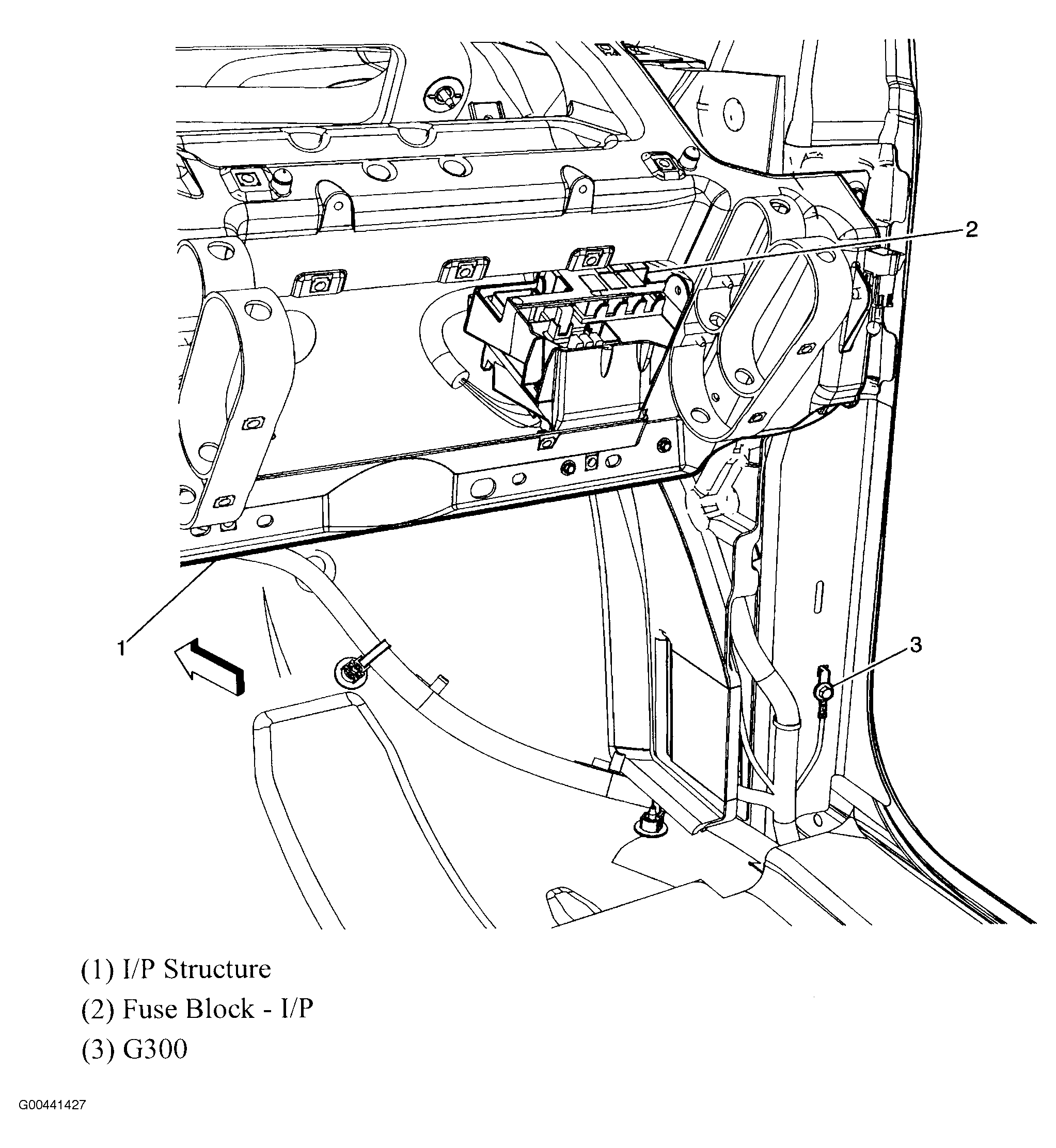 Fuse Block - I/P Behind right end of dash. See Figure.