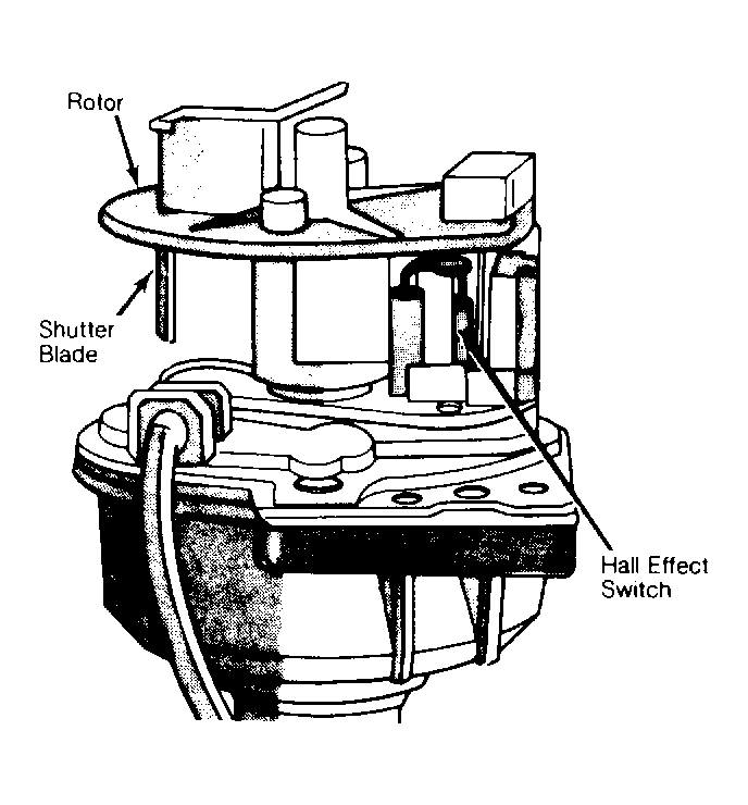 11. If spark resulted, but engine will not start, replace Hall Effect Pick-Up. Before replacing, however, always be sure rotor shutterblades are grounded. Connect 1 ohmmeter lead to a good ground and touch other lead to shutter blade. See Figure . If no continuity, push down on rotor to seat against shaft. If still no continuity, replace rotor. If shutterblade is grounded, then proceed to replace Hall Effect Pick-Up.