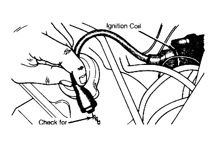 - If spark does not occur, proceed to step 4). If spark does occur, slowly move secondary wire away from ground, checking for arcing at coil tower. If arcing occurs, replace ignition coil.