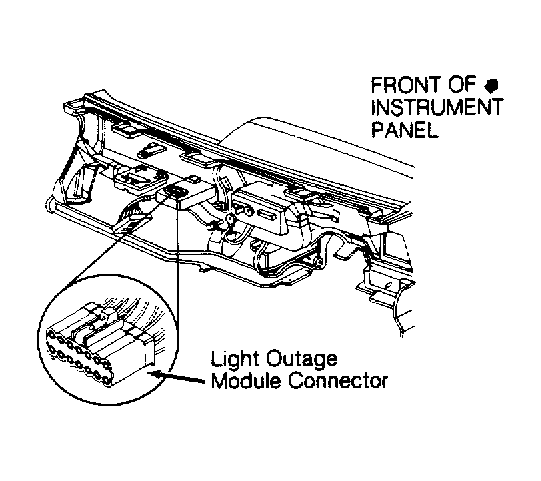 - If voltage is less than 10 volts, gain access to light outage module. See Figure. Put DRB-II in ohmmeter mode. Probe terminal No. 7 (Light Blue wire) of light outage module connector.