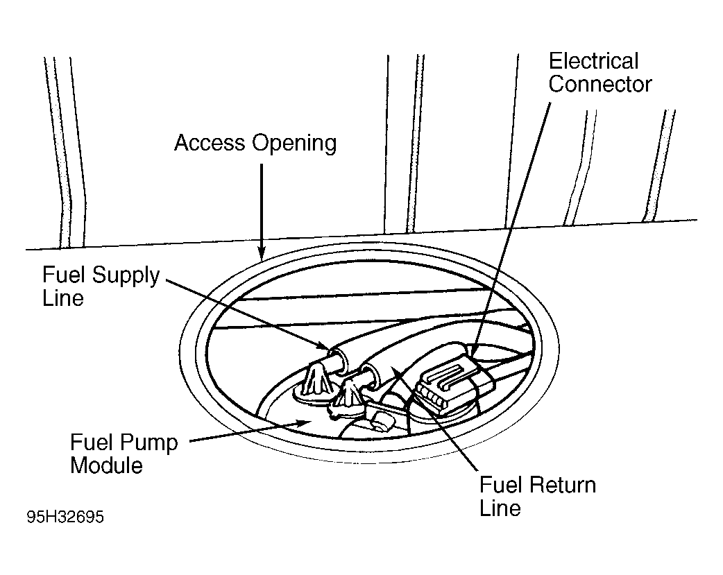 . Fuel pump module may be accessed by using access opening located below carpeting and cover in the trunk, just behind the rear seat.