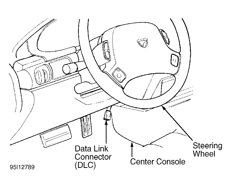 - Using fuel pressure gauge hose, connect Fuel Pressure Gauge (C-4799B) to fuel pressure test port. Connect scan tool to Data Link Connector (DLC), located below driver's side of instrument panel. See Fig 1