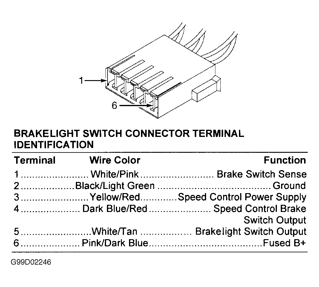 - Ensure ignition is off. Disconnect PCM connectors. PCM is located on left side of engine compartment, between Power Distribution Center (PDC) and Transmission Control Module (TCM). See Figure. Inspect connectors for damaged pins, corrosion and loose terminals. Repair connectors as necessary. If connectors are okay, measure resistance of White/Pink wire between terminal No. 1 at brakelight switch harness connector and terminal No. 62 at PCM C2 harness connector. See Figure and Fig 1