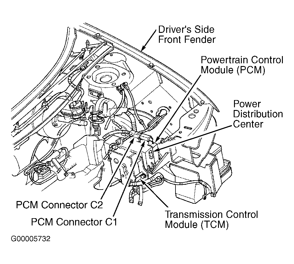 Fig 1: Locating PCM, Transmission Control Module (TCM) & Identifying PCM Connectors