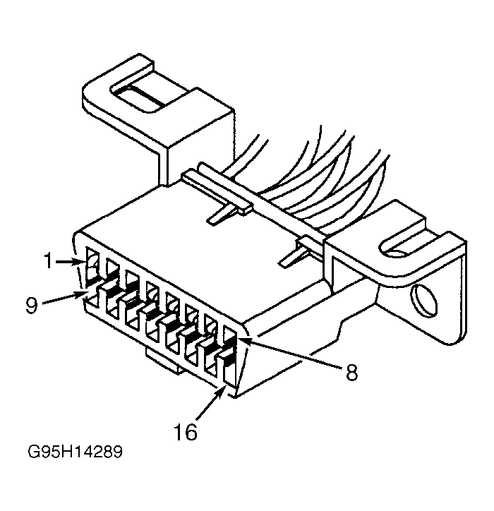 7. Turn ignition on. Measure voltage on DLC terminal No. 2, PCI bus circuit (Violet/Yellow wire). If voltage does not exist, go to next step. If voltage exists, repair short to voltage in Violet/Yellow wire.
