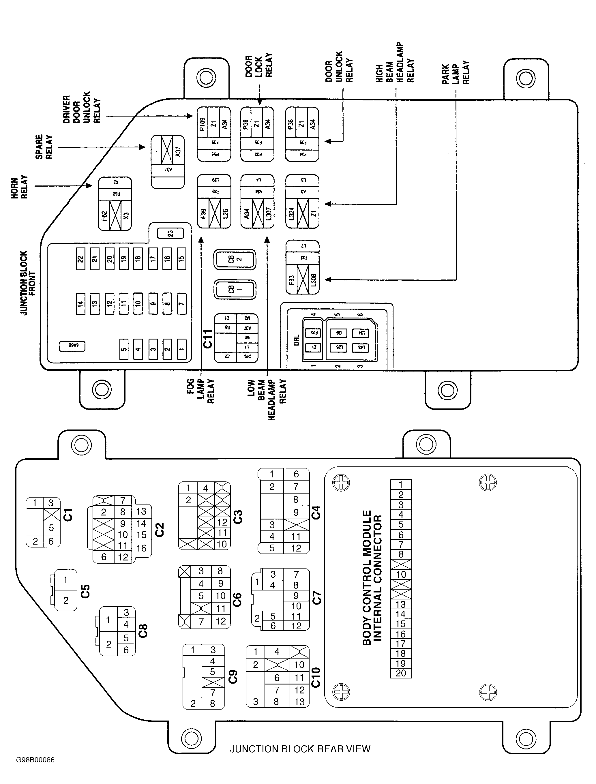 Fig 1: Identifying Junction Block Connector C2 Terminals