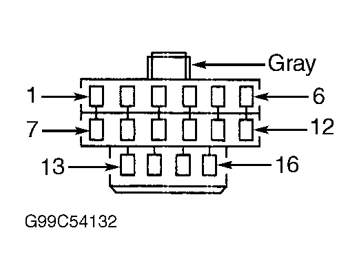 6. Disconnect BCM connector C1. Measure resistance between ground and Data Link Connector (DLC) terminal No. 2, PCI bus circuit (Violet/Yellow wire). See Fig 3 . If resistance is more than 100 ohms, go to next step. If resistance is 100 ohms or less, repair short to ground in Violet/Yellow wire.