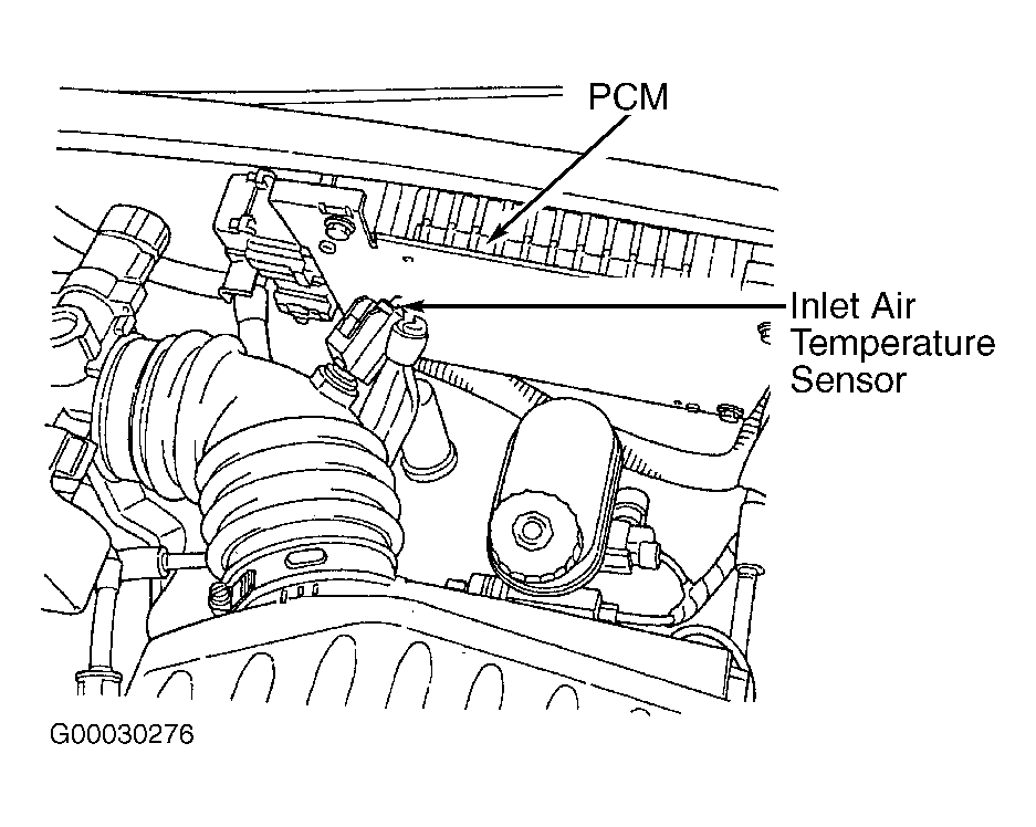 1. Powertrain Control Module (PCM) is located in left rear of engine compartment, behind brake master cylinder. See Fig 1. Remove air cleaner lid. Disconnect inlet air temperature sensor and air hose.