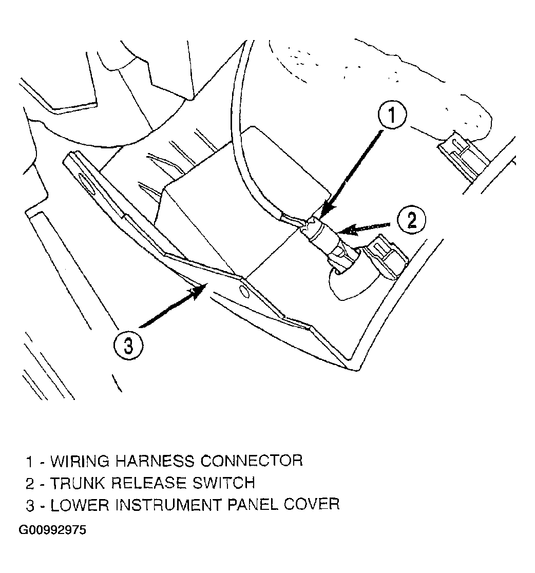 32. Install the wiring harness connector on the trunk release switch in the lower instrument panel cover (Figure).