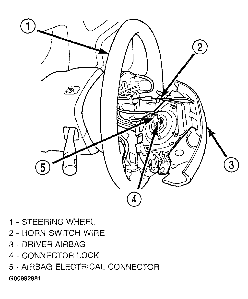 24. Install the airbag electrical lead into connector on back of driver airbag (Figure). Be sure electrical connector from clockspring is securely latched into driver airbag connector.