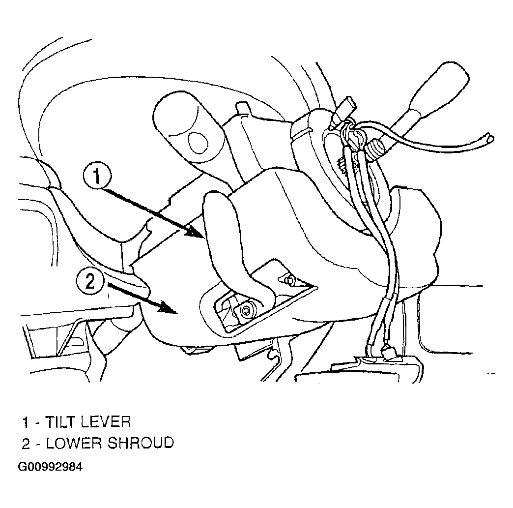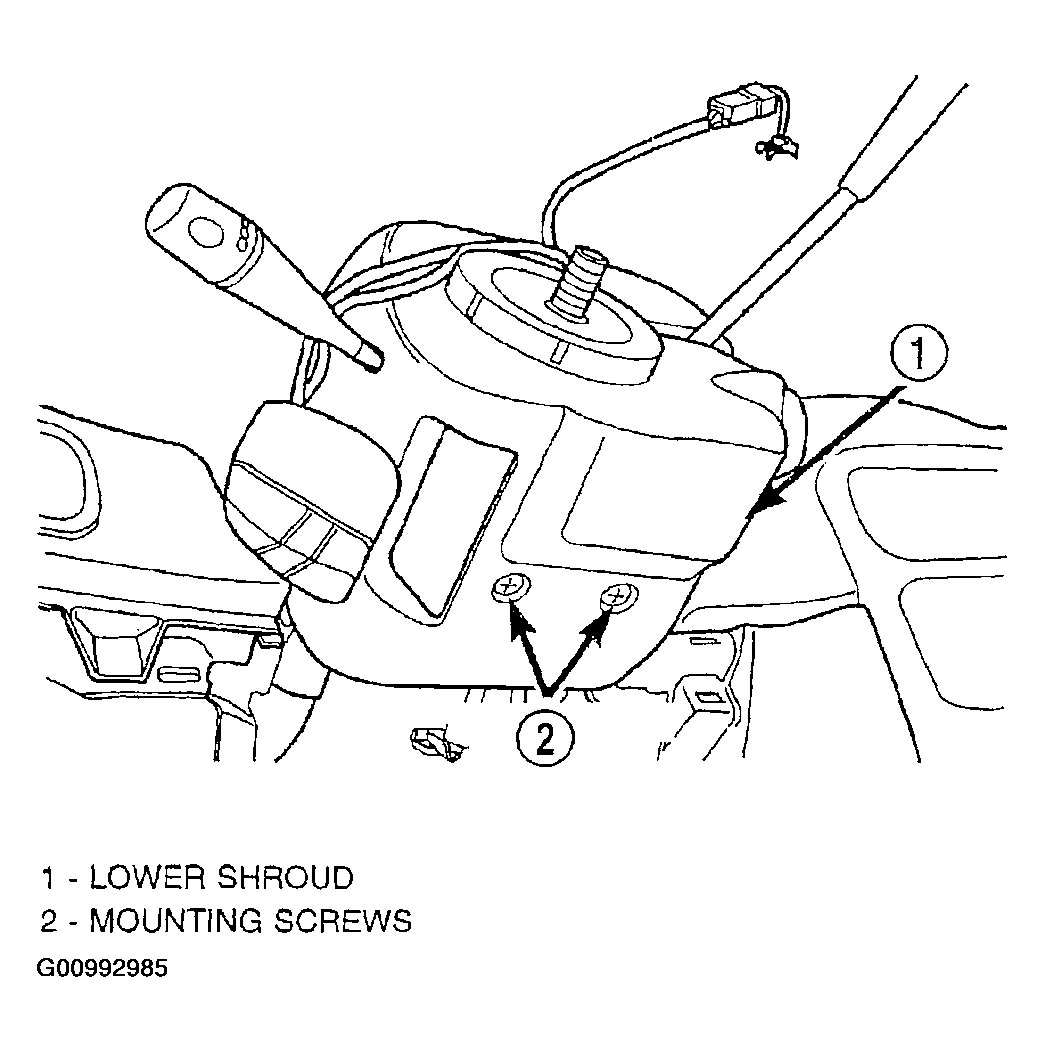 16. Install the lower shroud (Figure) on the steering column. Install and securely tighten the 2 screws attaching the lower shroud to the steering column.