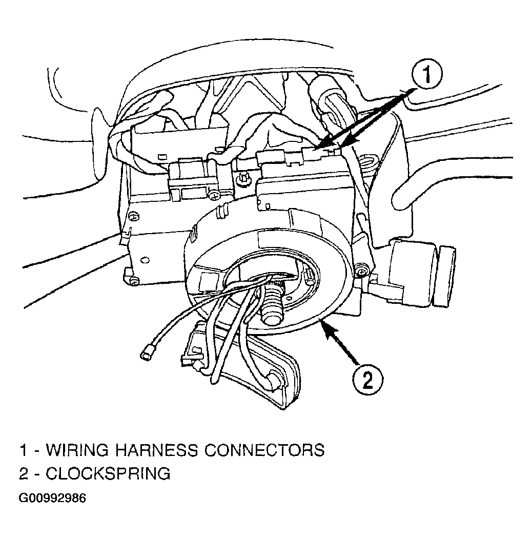 14. Install the wiring harness connectors (Figure) on the clockspring.