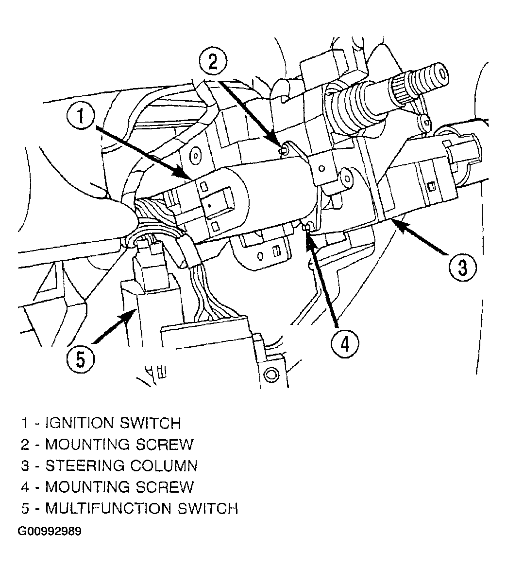 9. Install the ignition switch on the steering column. Install and securely tighten the 2 screws (Figure) mounting the ignition switch to the steering column.