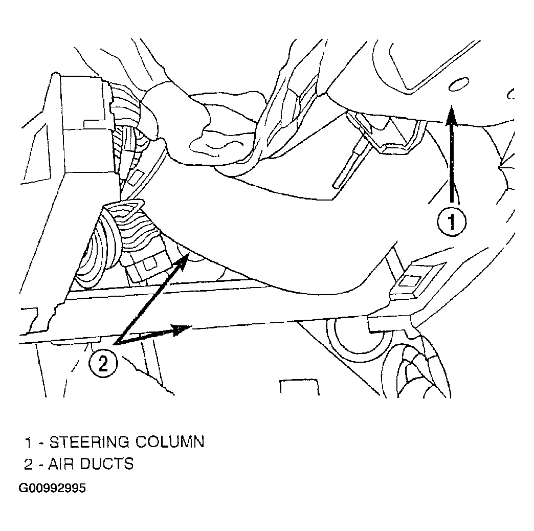 4. Install the two air ducts under the steering column (Figure).