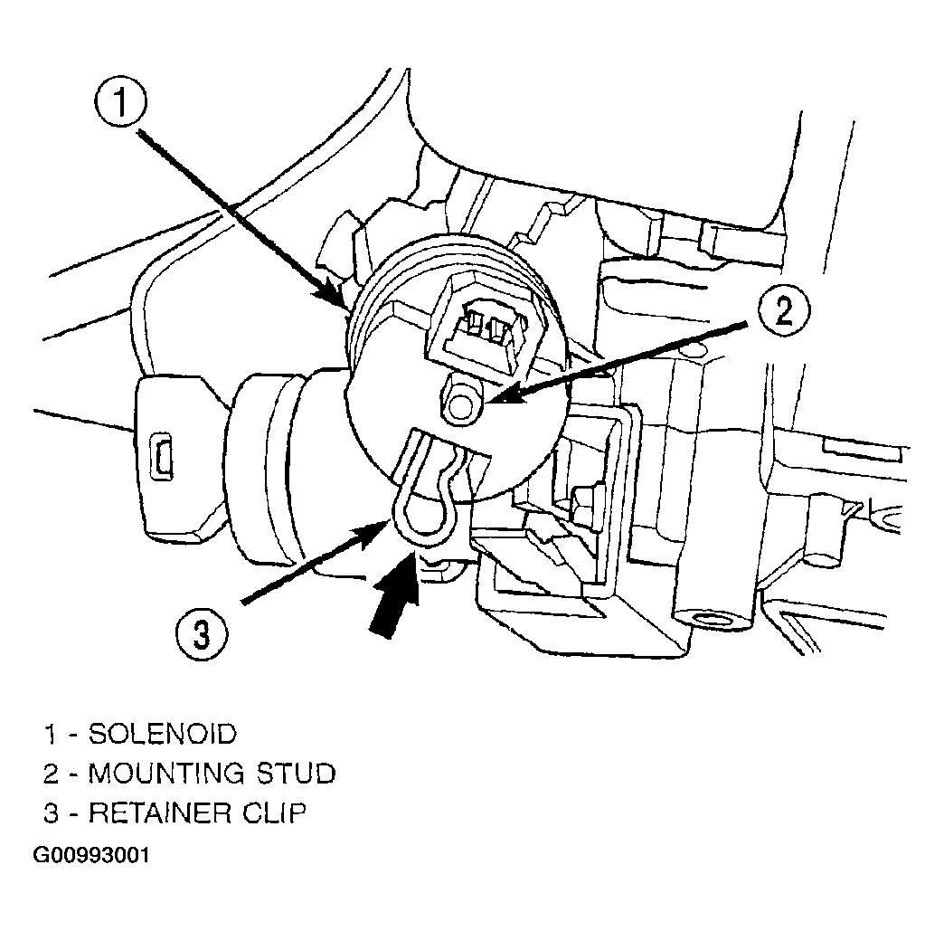 4. Verify the solenoid is locked in place and will not slide off the mounting stud.