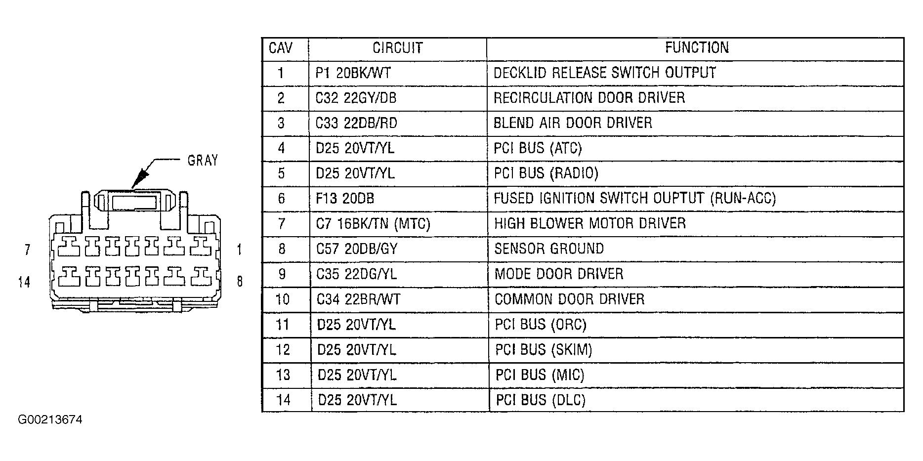 - Connect Black lead to chassis ground. Connect Red lead to ATC module connector terminal No. 2, PCI bus circuit (Violet/Yellow wire). Turn ignition on. Observe voltage display on scan tool lab scope. If voltage pulses from zero to about 7.5 volts, replace ATC module. See Figure -Figure . If voltage does not pulse from zero to about 7.5 volts, leave ATC module connector disconnected and go to next step.