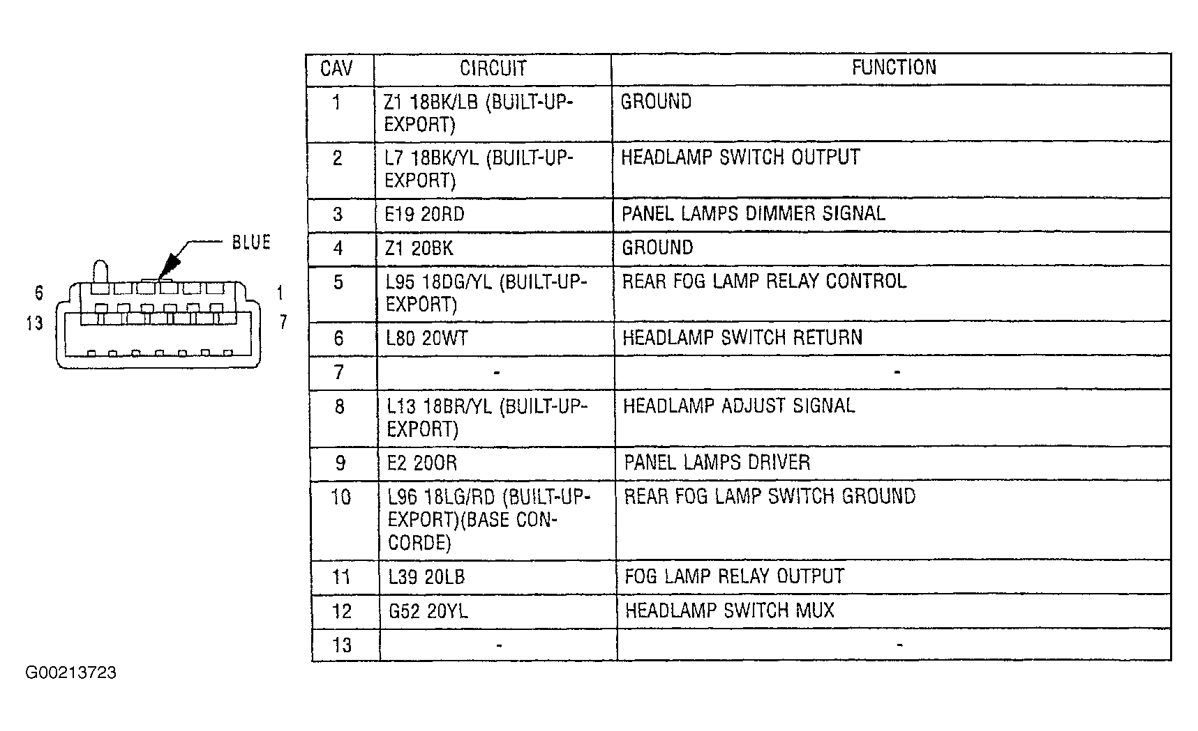 - Turn ignition off. Disconnect headlight switch connector. Turn ignition on. Measure voltage between ground and headlight switch connector terminal No. 12, headlight switch MUX circuit (Yellow wire). See Figure . If voltage is more than 5.3 volts, leave headlight switch connector disconnected and go to next step. If voltage is 5.3 volts or less, leave headlight switch connector disconnected and go to step 5 .