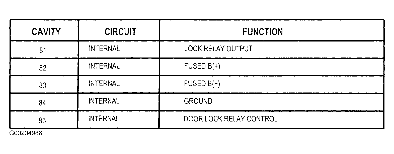 - Measure resistance between door lock relay (component side) terminals No. 85 and 86. See Figure . If resistance is 50-90 ohms, leave door lock relay removed and go to next step. If resistance is not 50-90, replace door lock relay. See POWER DOOR LOCKS & TRUNK RELEASE - CONCORDE, INTREPID & 300M article.