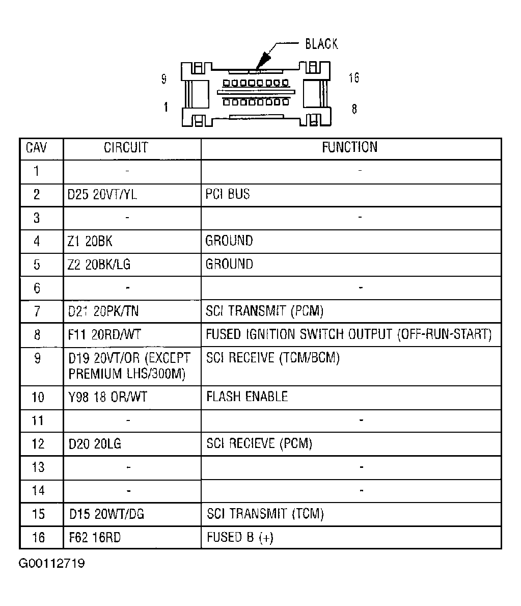 2. If scan tool will not power up, check for loose cable connections or bad cable. If cable connections and cable are okay, measure voltage at DLC power terminal No. 16 (Red wire). See Figure. Voltage should be at least 11 volts. If voltage is not as specified, check wiring circuit and fuse No. 18 (20-amp) in junction block behind end cover on left side of instrument panel. Repair wiring or replace fuse as necessary.