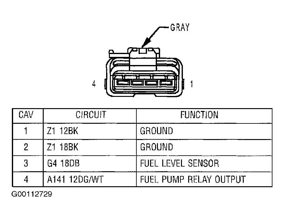 - Turn ignition off. Connect a test light between battery positive terminal and ground circuit (Black wire) at fuel pump module harness connector. If test light illuminates brightly, go to next step. If test light does not illuminate brightly, repair open in ground circuit. See WIRING DIAGRAMS article.