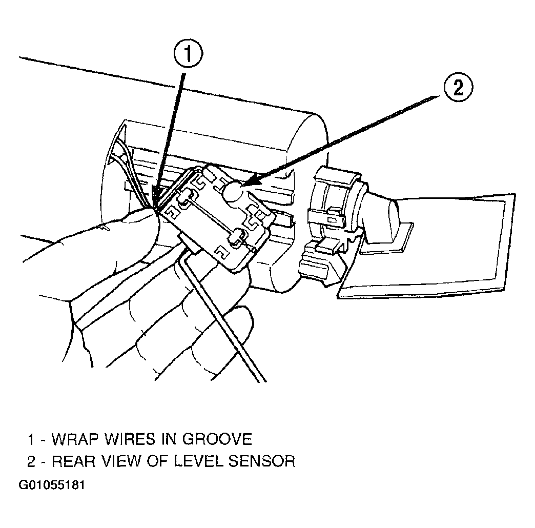 - Wrap wires into groove in back of level sensor (Fig 1).