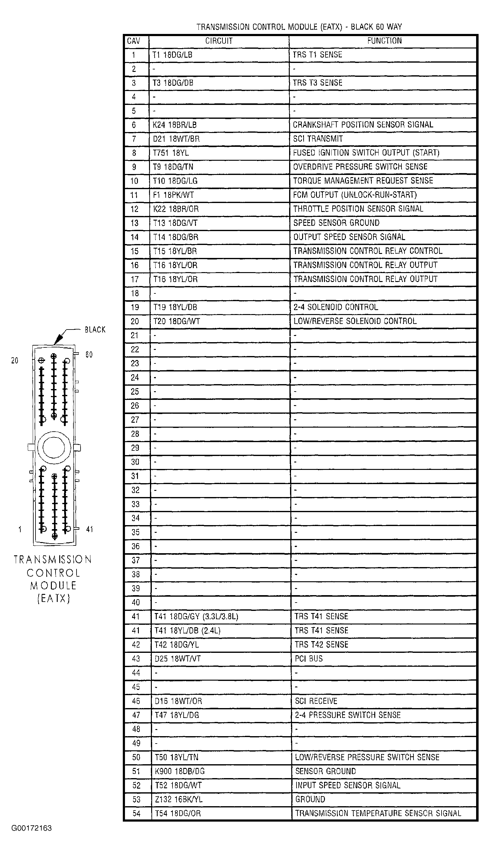 Fig 1: Identifying Transmission Control Module Connector Terminals