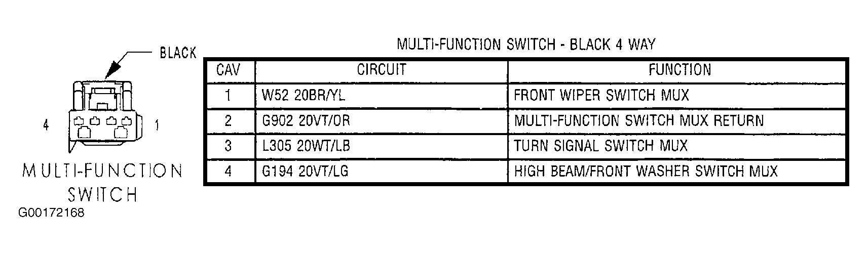 - Turn the ignition off. Disconnect the Multifunction Switch harness connector. See Fig 1. Turn the ignition on. With the DRBIII®, read the Multifunction Switch voltage. If the voltage is above 4.8 volts, replace the Multifunction Switch. See STEERING COLUMN SWITCHES article. If the voltage is below 4.8 volts, go to the next step.