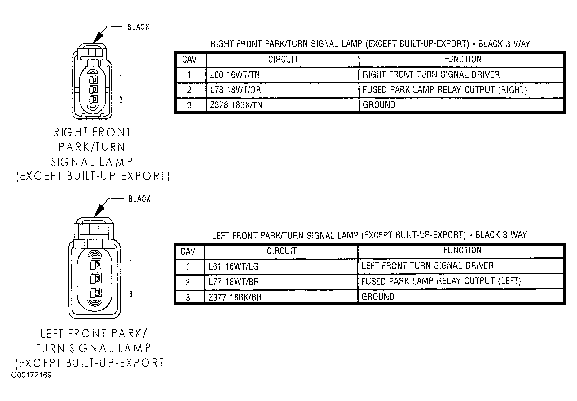 2. Turn the ignition off. Disconnect the Right Front Turn Signal harness connector. See Figure. Using a 12-volt test light connected to 12-volts, check the ground circuit. If the test light illuminates brightly, go to the next step. If the test light does not illuminate brightly, repair the ground circuit.
