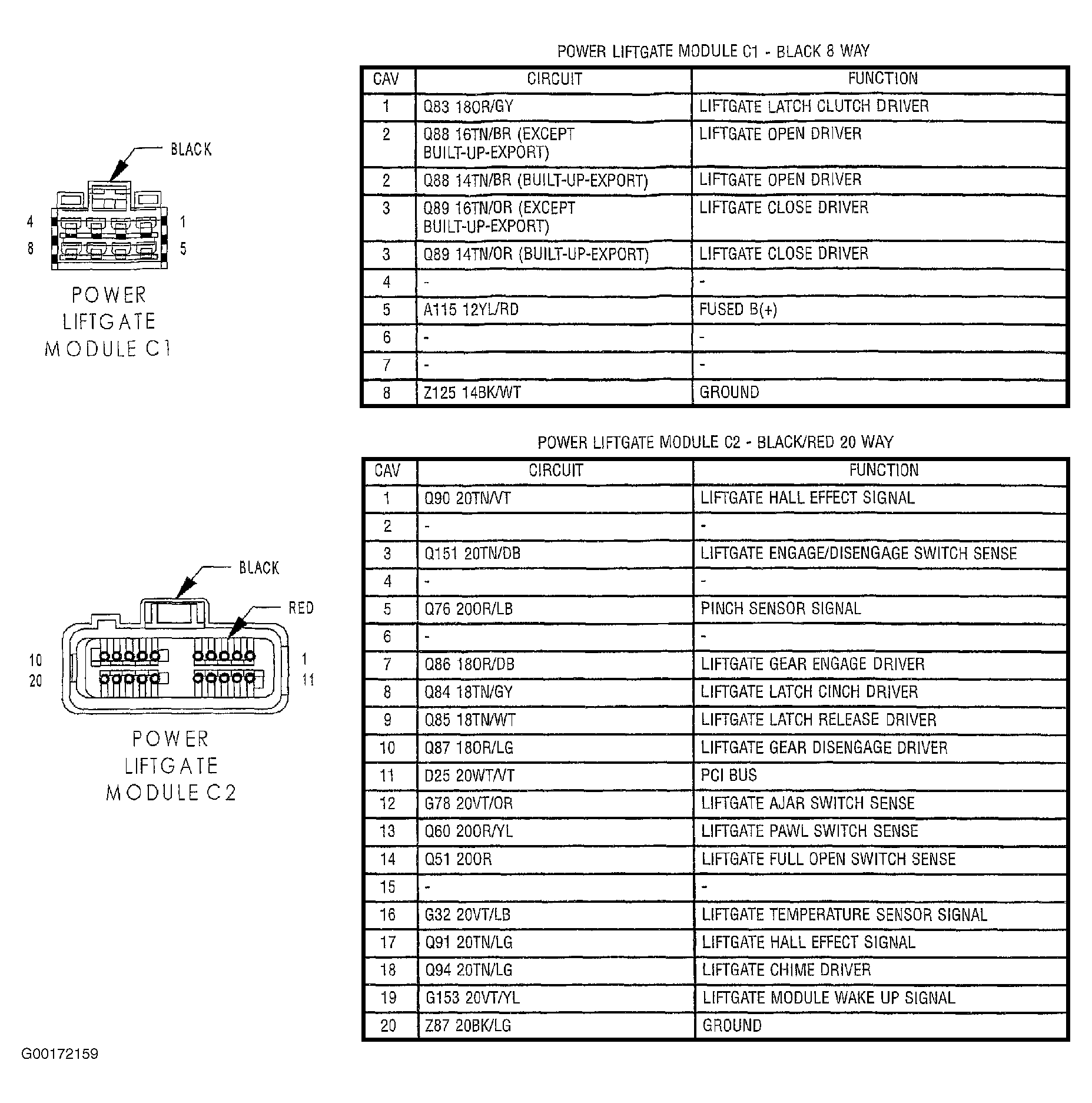 3. Using scan tool, select INPUTS/OUTPUTS and monitor FULL OPEN SWITCH state. Open liftgate to mid position. Access full open switch connector. See Figure. To access connector, left rear trim will need to be removed. See POWER LIFTGATE MODULE  under REMOVAL & INSTALLATION. Wiggle wiring harness. If FULL OPEN SWITCH state ever changes, repair short to ground in Orange wire between Power Liftgate Module (PLGM) connector C2 terminal No. 14 and power liftgate motor connector terminal No. 2. See Figure. If FULL OPEN SWITCH state does not change, replace power liftgate motor. See REMOVAL & INSTALLATION in POWER SLIDING DOORS & LIFTGATE article.