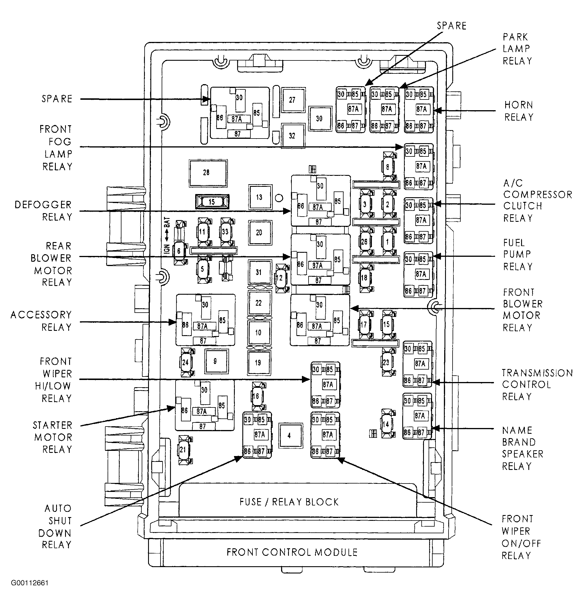 - Turn ignition off. Disconnect Powertrain Control Module (PCM) connectors. PCM is located on left side of engine compartment, near front of battery. See Fig 1. Inspect connectors for damaged pins, corrosion and loose terminals. Repair connectors necessary. Using a test light connected to ground, probe terminal No. 46 (Orange/Red wire) at PCM C2 harness connector. See Fig 2. If test light illuminates brightly, go to next step. If test light does not illuminate brightly, repair open in Orange/Red wire between fuse No. 17 (20-amp) in Intelligent Power Module (IPM) on left side of engine compartment, next to battery. See Fig 1. Also inspect fuse No. 17 in IPM. See Fig 3.