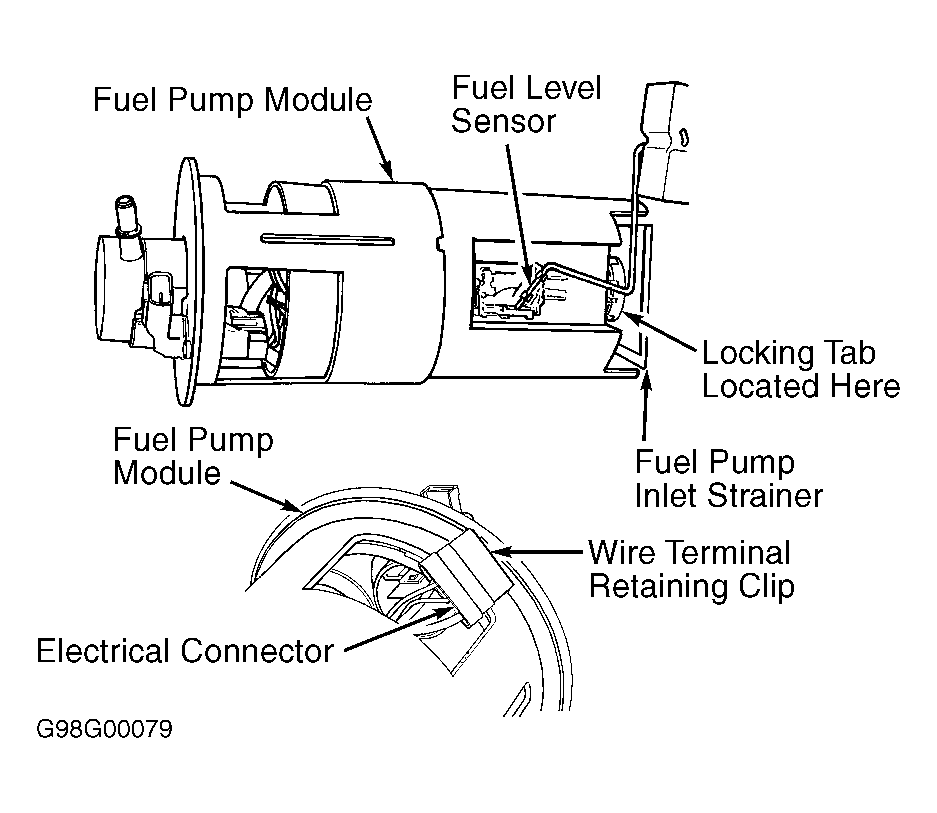 Fuel level sensor may also be referred to as fuel gauge sending unit. The fuel level sensor is located in fuel tank, on fuel pump module assembly. See Fig 1 . The fuel level sensor is a variable resistor. The resistance changes with the amount of fuel in the tank. The float arm attached to the sensor, moves as the fuel level changes. The fuel level input is used as an input for OBD-II. If the fuel level is below 15 percent or above 85 percent of total tank capacity, several monitors are disabled.