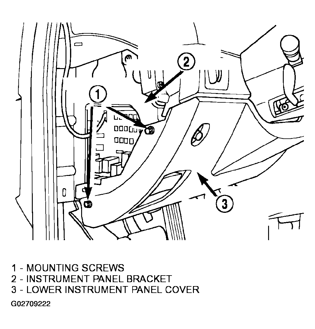 34. Install the two screws behind the fuse panel cover attaching the lower instrument panel cover to the instrument panel (Figure ).